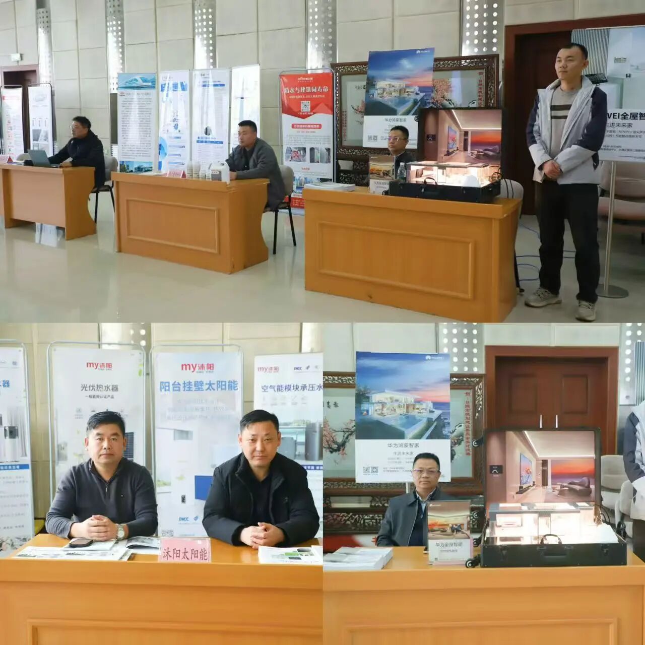 交流会现场还设置了绿色科技建材展览区,日照椿龄居养老产业有限公司、鸿蒙华数 (山东) 智能工程有限公司、华业科技集团有限公司、日照弗尔曼新材料科技有限公司、山东沐阳新能源有限公司、中铁二十三局集团有限公司等 6 家企业分别设立展位,集中展示新型功能类建材、适老化产品与相关技术。