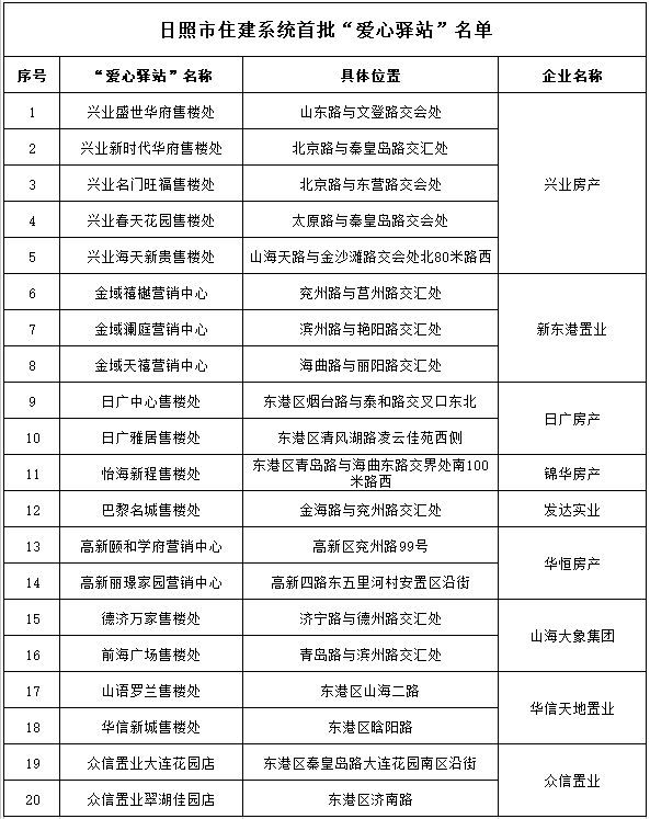 为进一步为我市市民和户外劳动者提供便利、贴心的服务和休息场所,让人民群众有获得感、安全感和幸福感,市住房和城乡建设局联合日照市房地产业协会建设了住建系统“爱心驿站”,截至目前,首批已建设“爱心驿站”20处。